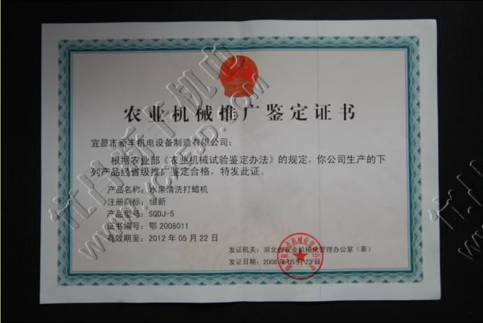 農(nóng)業(yè)機(jī)械推廣鑒定證書(shū)